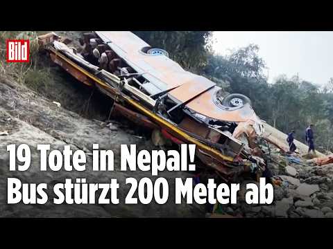 Tragödie in Nepal: Ein Passagierbus kommt auf einer Bergstraße von der Fahrbahn ab und stürzt rund 200 Meter in die Tiefe. 19 Menschen sterben, darunter ein britischer Tourist. Mindestens 25 weitere Passagiere erleiden Verletzungen. Mehr als 40 Menschen sitzen an Bord. Die Polizei spricht von einem der schwersten Unfälle der Region. In dem bergigen Land gelten viele Straßen als riskant, schwere Busunglücke sind keine Seltenheit. Die Hintergründe des Absturzes sind noch unklar, Ermittlungen laufen.
