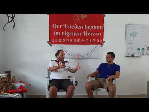 Der Mann im roten Shirt, Stephan Bergmann Autor, Gründer der PeaceCrowd und vom Verein für indianische Lebensweisen e.V., ist Erfinder der Motherdrum und Entdecker des Motherdrum-Healings. Er arbeitet seit Jahren daran die Spaltung der Menschen und die Spaltung im Menschen zu heilen.