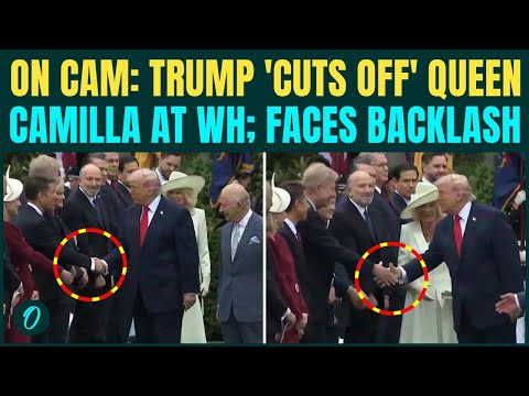 US President Donald Trump is facing backlash after a viral video showed him interrupting Queen Camilla during an official greeting at the White House. In the clip, Camilla is seen moving along a receiving line on the South Lawn, shaking hands with members of Trump’s cabinet and other officials. Midway through the interaction, Trump steps forward, cutting across her path and appearing to take control of the moment. He then begins greeting attendees himself, effectively sidelining Camilla.